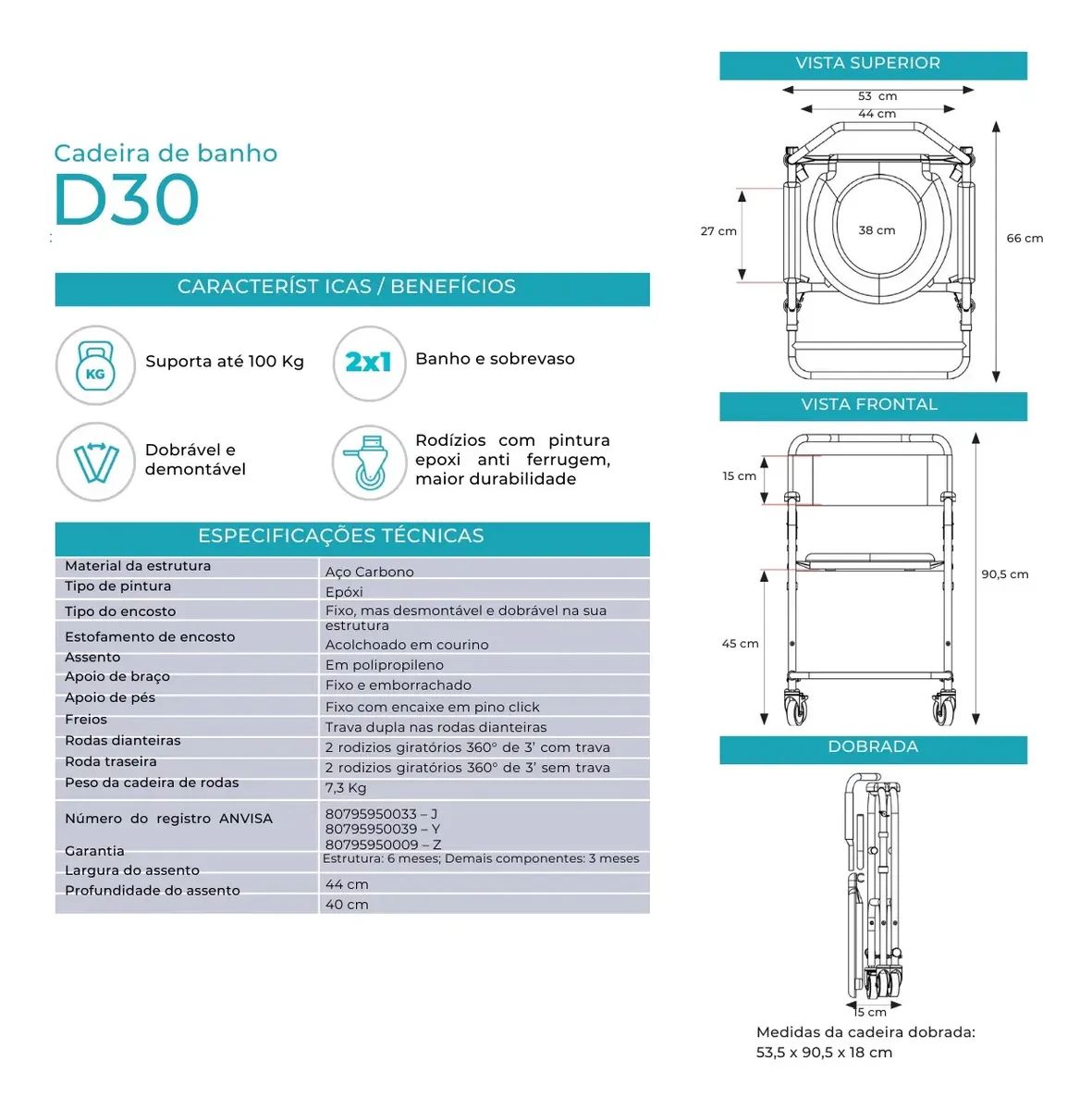 Cadeira De Banho Dobrável Higienica Com Rodas Dellamed D30
