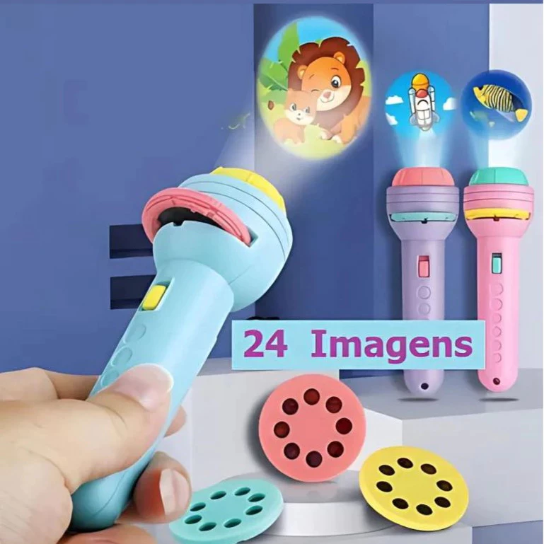 Lanterna Projetora Infantil 24 Imagens Animais para Crianças Brinquedo Projeção 3 Discos